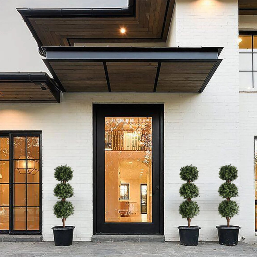 - 4.6ft/56in Artificial Three-ball Boxwood Modeling Tree with Pot
